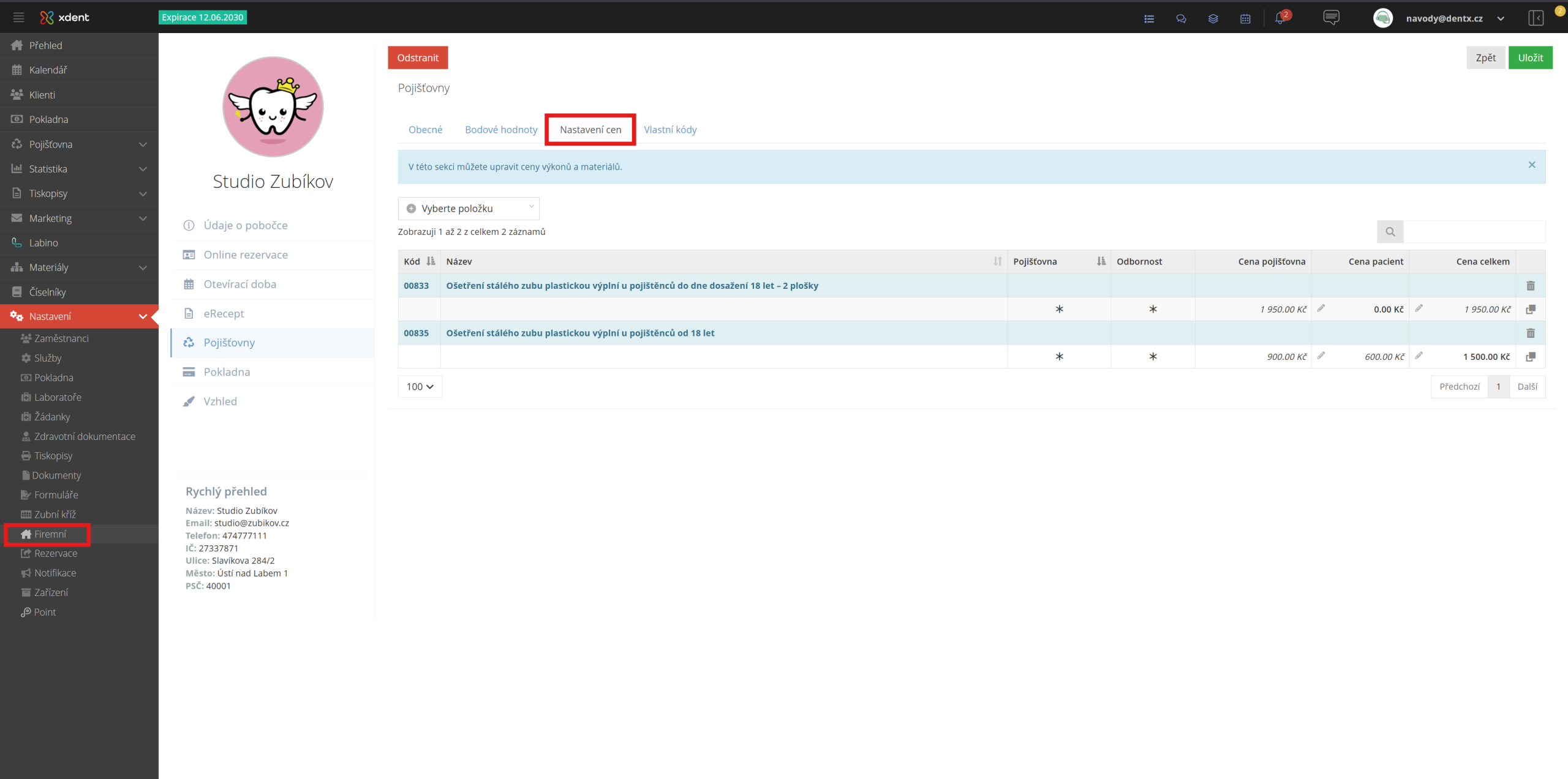 Nastavení doplatku naleznete v sekci Firemní -> vyberte pobočku -> Nastavení cen