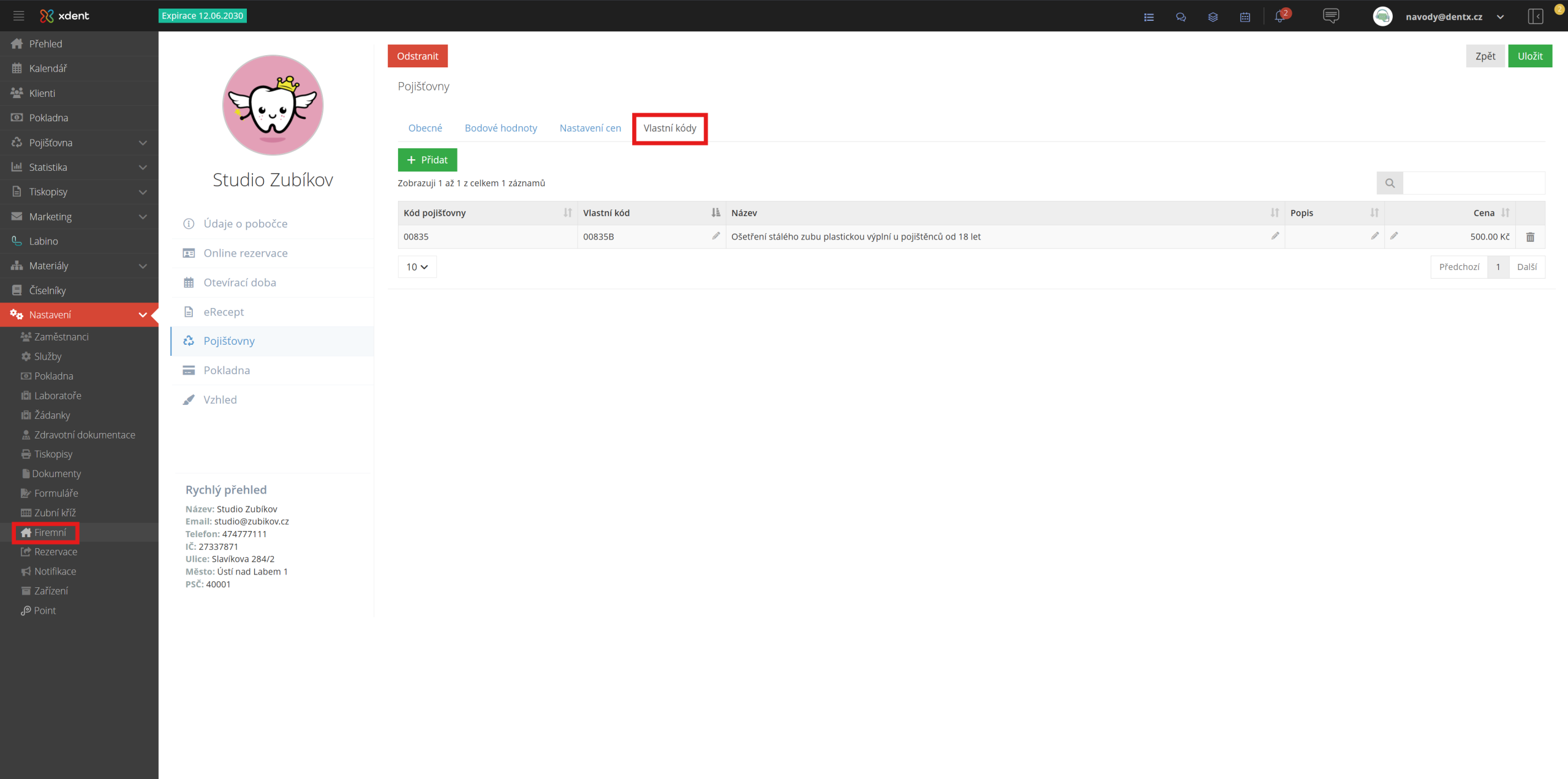 • nastavovat doplatky k částečně hrazeným kódům podle pobočky